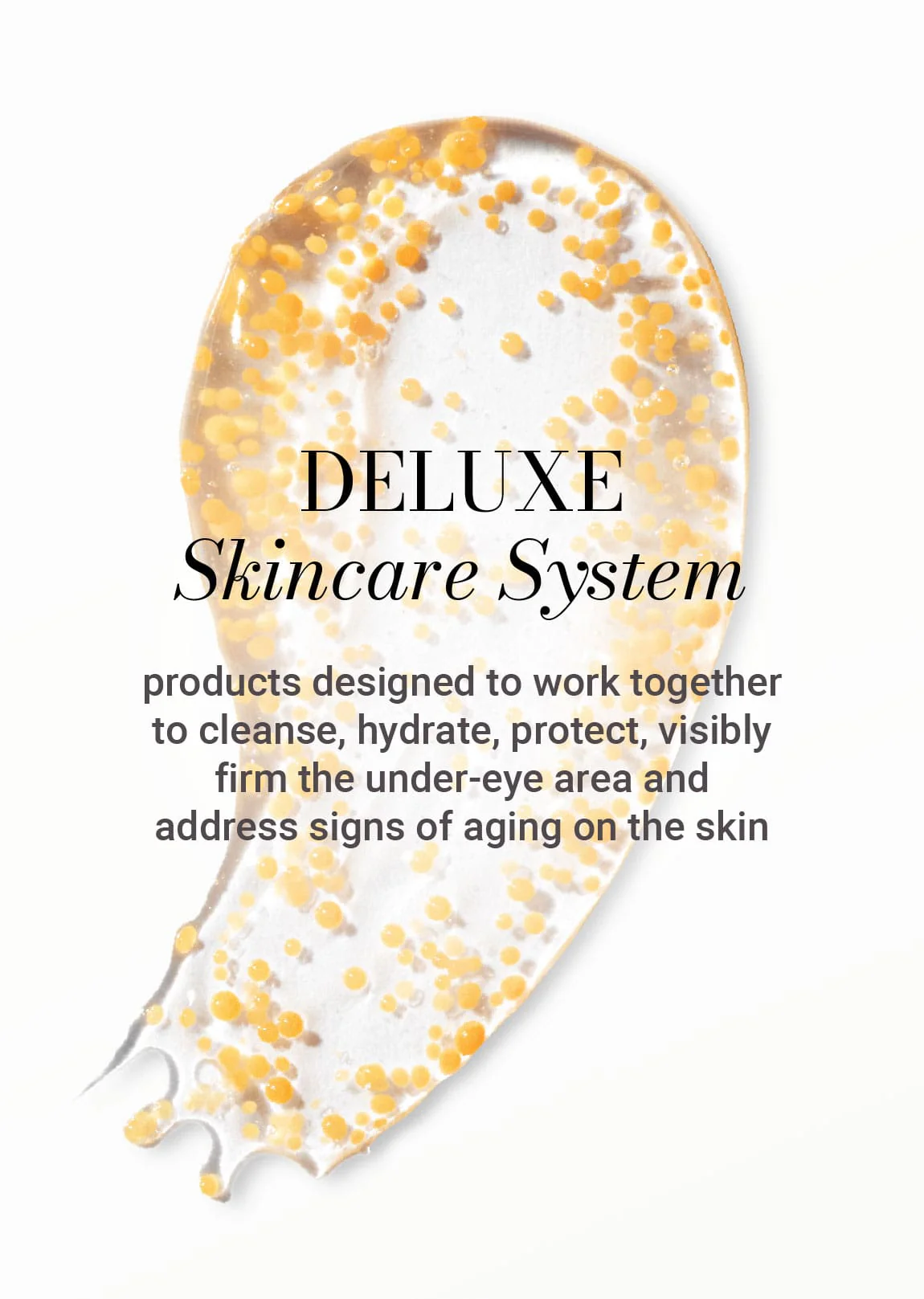 Our deluxe system is formulated with best-in-class ingredients to hydrate and help visibly firm and smooth skin as it evens the appearance of skin tone, gradually fades the look of dark spots and discoloration and minimizes the look of fine lines and wrinkles.Â