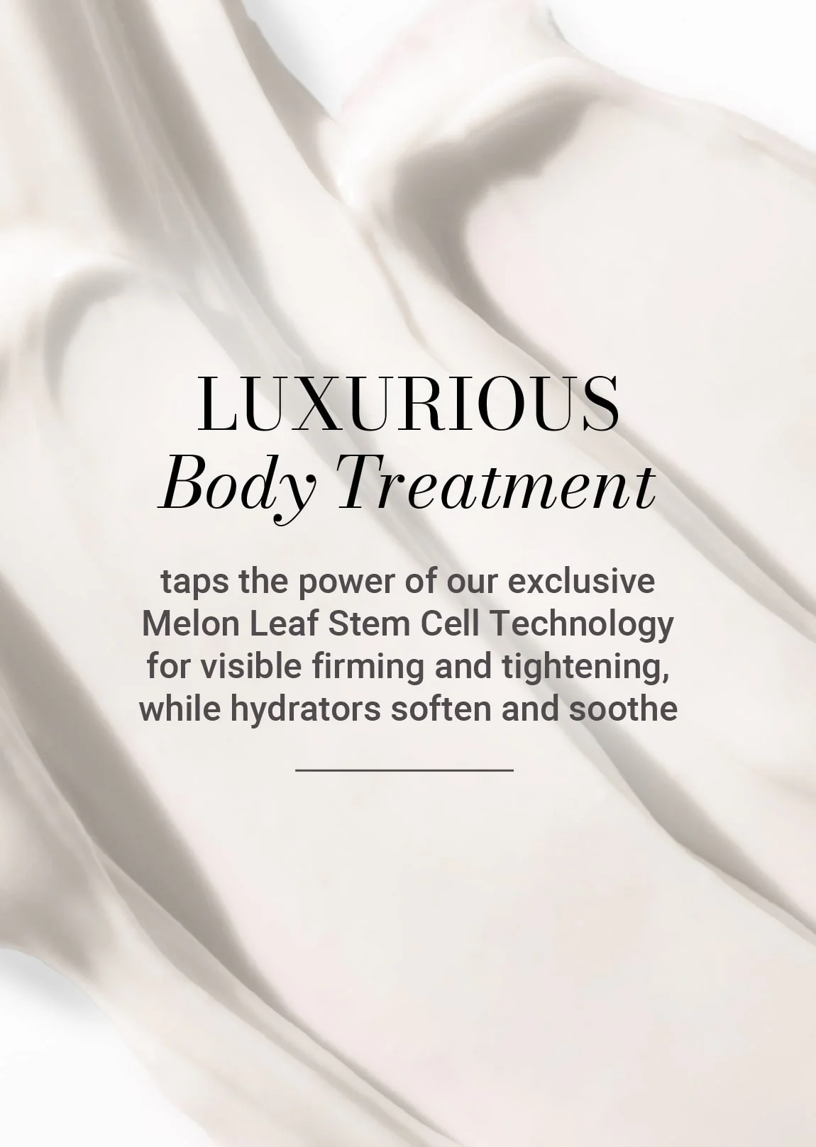 This luxurious body treatment taps the power of our exclusive Melon Leaf Stem Cell Technology for visible firming and tightening, while hydrators soften and soothe.