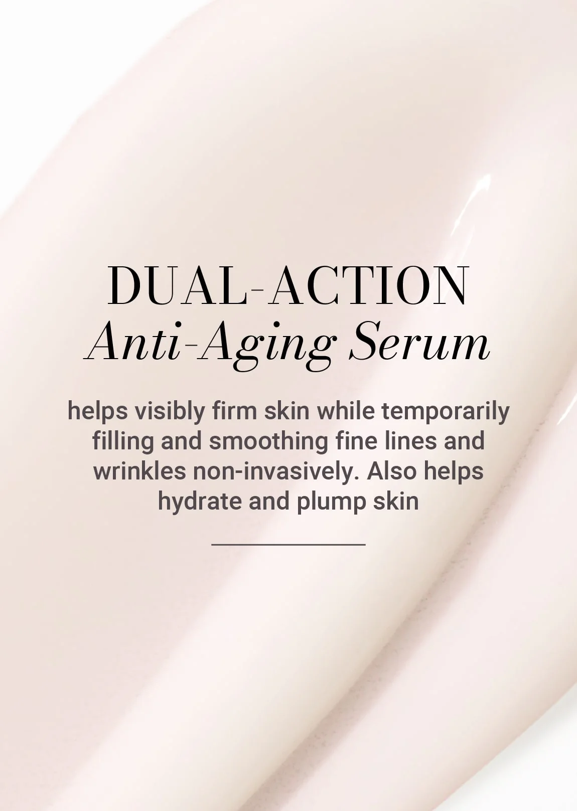 A dual-action anti-aging serum that helps visibly firm skin while temporarily filling and smoothing fine lines and wrinkles non-invasively. Also helps hydrate and plump skin.